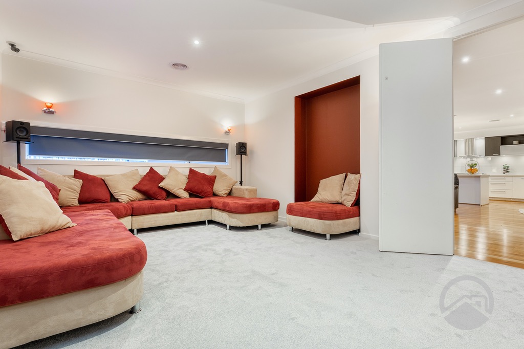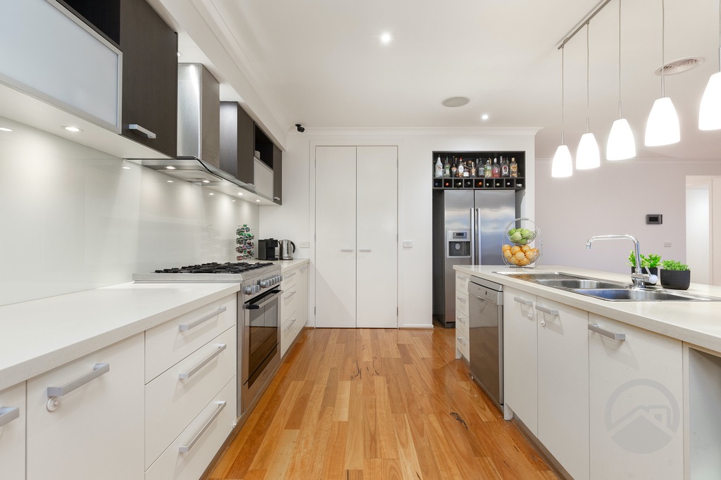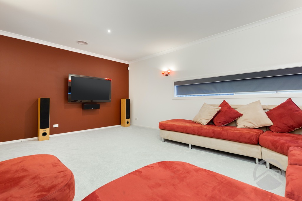 The stunning designer kitchen provides a focus for relaxed entertaining within state-of-the-art stainless steel appliances, light filled, open plan meals and family living leading on to the Theatre to kick your feet up; relax and take in your favourite flix.