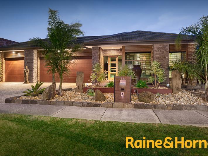 This Masterpiece is completed by the extra-large three cars garage, rear roller door access for campervan, boat or trailer, garden shed, a good size laundry room. High-end features abound throughout this grand residence, including recordable color video intercom; feature lighting; back to base surveillance, ceiling fan; on this resort style living, ducted heating, evaporated cooling and so much more. Environmentally friendly with recycled water plumbed in for gardening; display quality landscaping to both front and back of this home leaves no stone unturned.